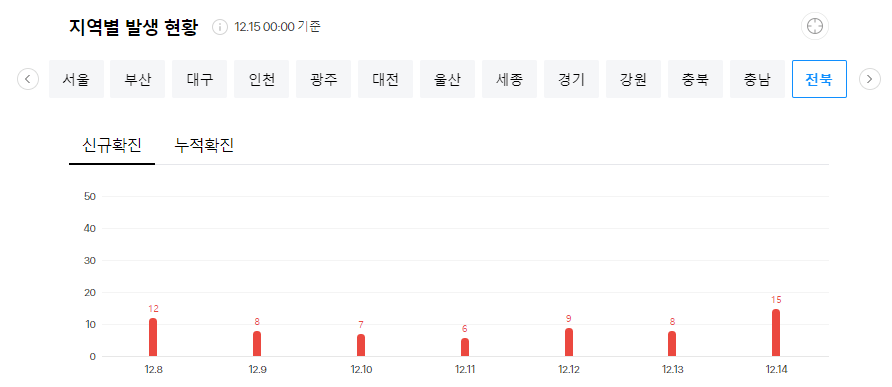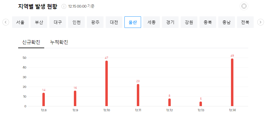 12월 15일 0시 기준으로 코로나19 확진자가 800명을 훌쩍넘겼습니다. 이틀전에는 1000명을 돌파하여 코로나19의 확산세가 조금 누그러 진거 같지만 800명도 적은숫자는 아닙니다. 12월 14일까지의 코로나19 발생현황을 알아보겠습니다.