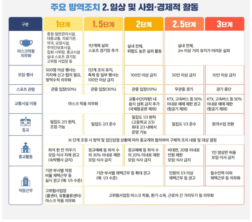 사회적 거리두기 2단계 방역조치(일상 및 사회경제적 활동)
